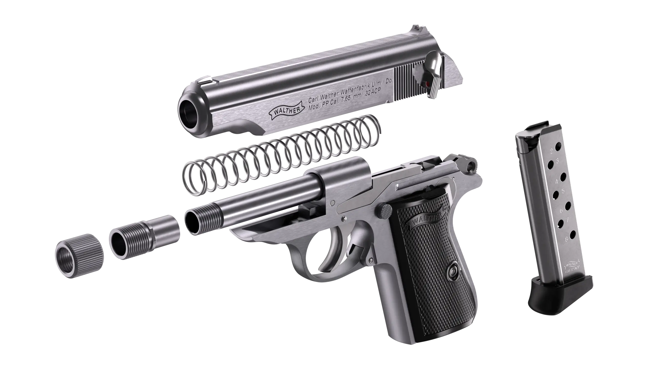 The reintroduced Walther PP SD Stainless honors its historic past while embracing advanced firearm technology. With an 8-round capacity and suppressor-ready capability, this stainless-finished pistol is a must-have for collectors and enthusiasts, offering a seamless blend of heritage, craftsmanship, and superior performance.