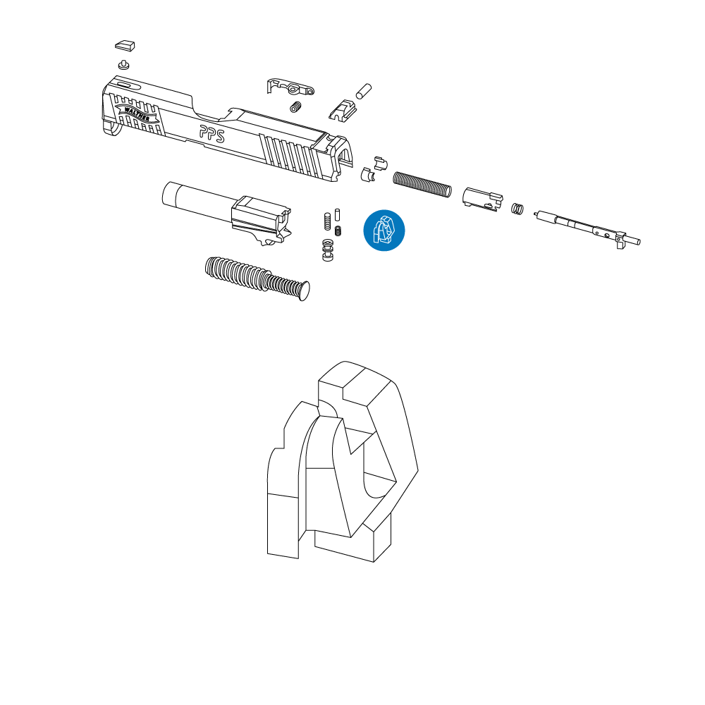 A replacement slide end cap for the PPS series of pistols